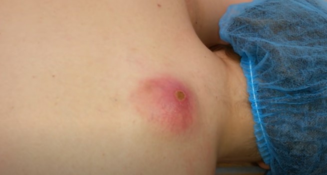 Cyst Popping Infected Cheese Cyst Explosion March 24, 2022 Infected Cheese Cyst Explosion from Pimple Addicts on Vimeo.